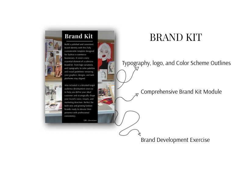 Every current and future digital file--editable templates, guides and documents--is delivered directly to your email and stored within the platform. This ensures you always have the tools and resources you need at your fingertips as you grow your fashion e-commerce business.